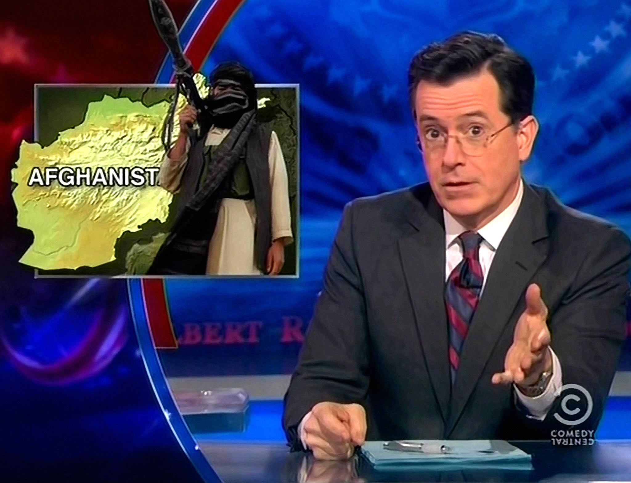 STEPHEN COLBERT: Meanwhile – meanwhile, they're staying in Afghanistan to negotiate with the Taliban who evidently have a better track record on women's issues.