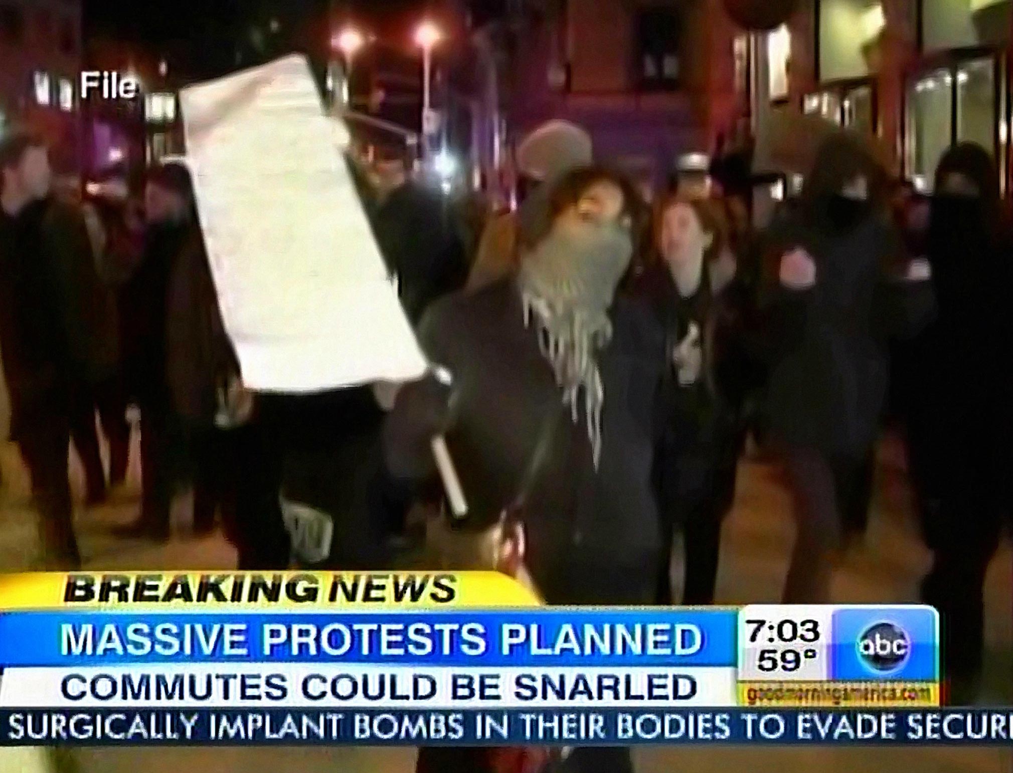 JOSH ELLIOTT: We're going to begin with what's shaping up to be a potentially brutal morning commute, particularly in major cities across the country. It includes here in New York, where the Occupy Wall Street movement is threatening now to block bridges, tunnels and waterways, to prevent people from going to work. It's all a part of civil disobedience for May Day, also known as International Workers Day. In San Francisco, protesters got an early start with a planned march overnight. But some split away from the group and vandalized property in the city's mission district.