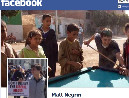 Negrin seems to enjoy discounting the concept of media bias. On his Facebook page, the section that's public includes a picture of him holding a Media Research Center "Don't Believe the Liberal Media!" sign.