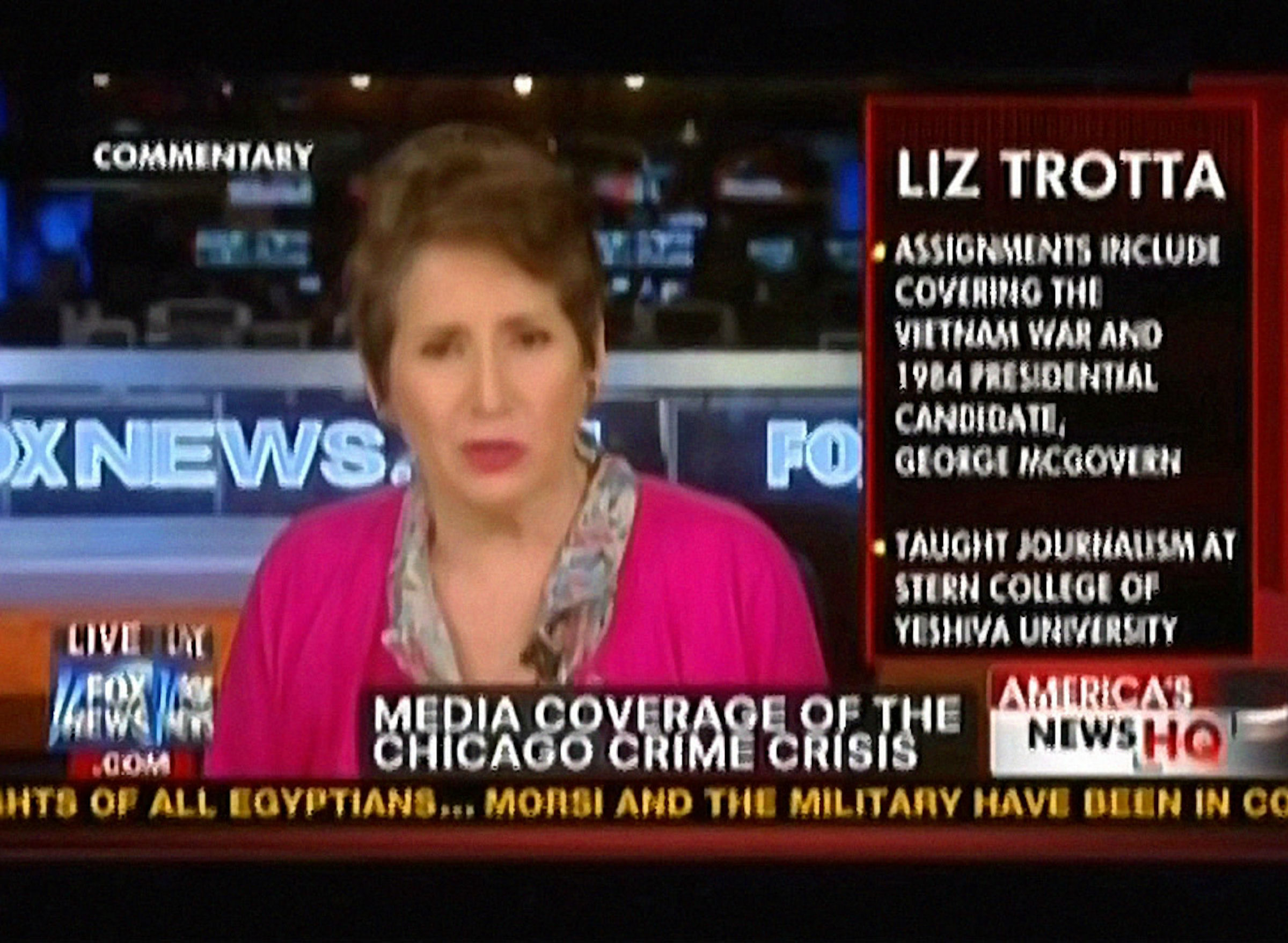 Former NBC correspondent Liz Trotta on Sunday called out journalists for ignoring the skyrocketing murder rate in Rahm Emanuel's Chicago. In her Fox News commentary, Trotta singled out George Stephanopoulos, an Emanuel friend, for skipping the topic when he interviewed the (now) mayor of Chicago.