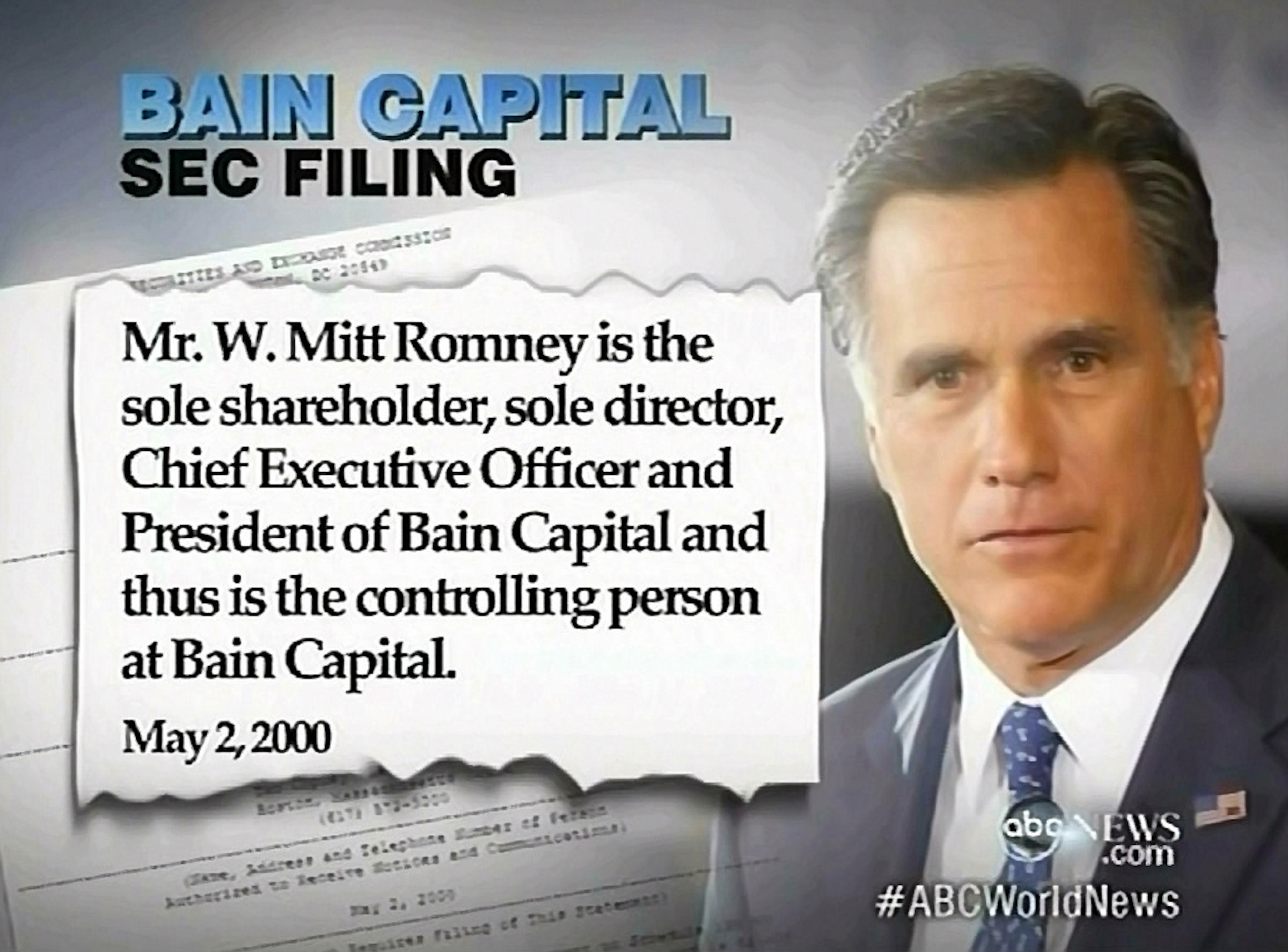 MUIR: David Kerley in Washington, thanks. David, thank you. I want to bring in our senior Washington editor Rick Klein in Washington. Rick, great to have you, as always. And as we heard from David point out there, it's not just team Obama. It's now Republicans, too. But look at this quote. This is from the SEC filing itself. And it writes, right there, that Mitt Romney signed, that he is the "sole shareholder, sole director, chief executive officer and president of Bain Capital and thus is the controlling person of Bain Capital." That from May 2000 after he left wo work for the Salt Lake City Olympics. And so, the question is, how big of a hurdle will this be for the Romney campaign?