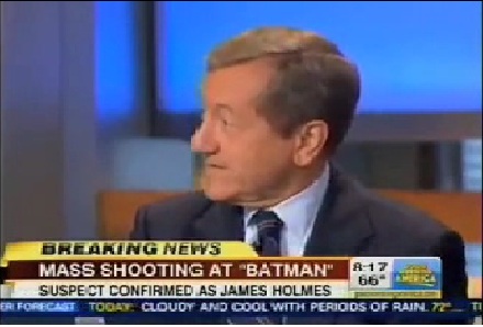 [Developing -- Updates and video after the jump. MP3 audio here.] Hours after mass murder at a 12am showing of the new Batman film, ABC News reporter Brian Ross went on Good Morning America and speculated that the killer could be a Tea Party member.