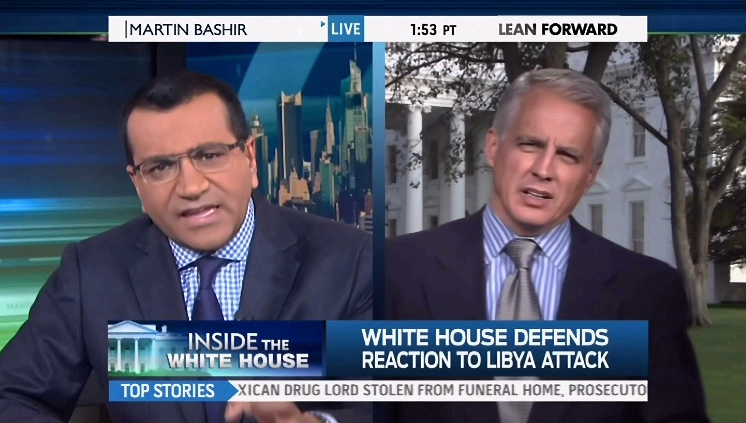 MARTIN BASHIR: Today's White House briefing was a heated and contentious affair as Press Secretary Jay Carney fielded a barrage of questions about the attack in Libya that ended with the death of Ambassador Stevens and three other Americans. Our own Mike Viqueira pressed Mr. Carney on why it's taken so long to get definitive answers.