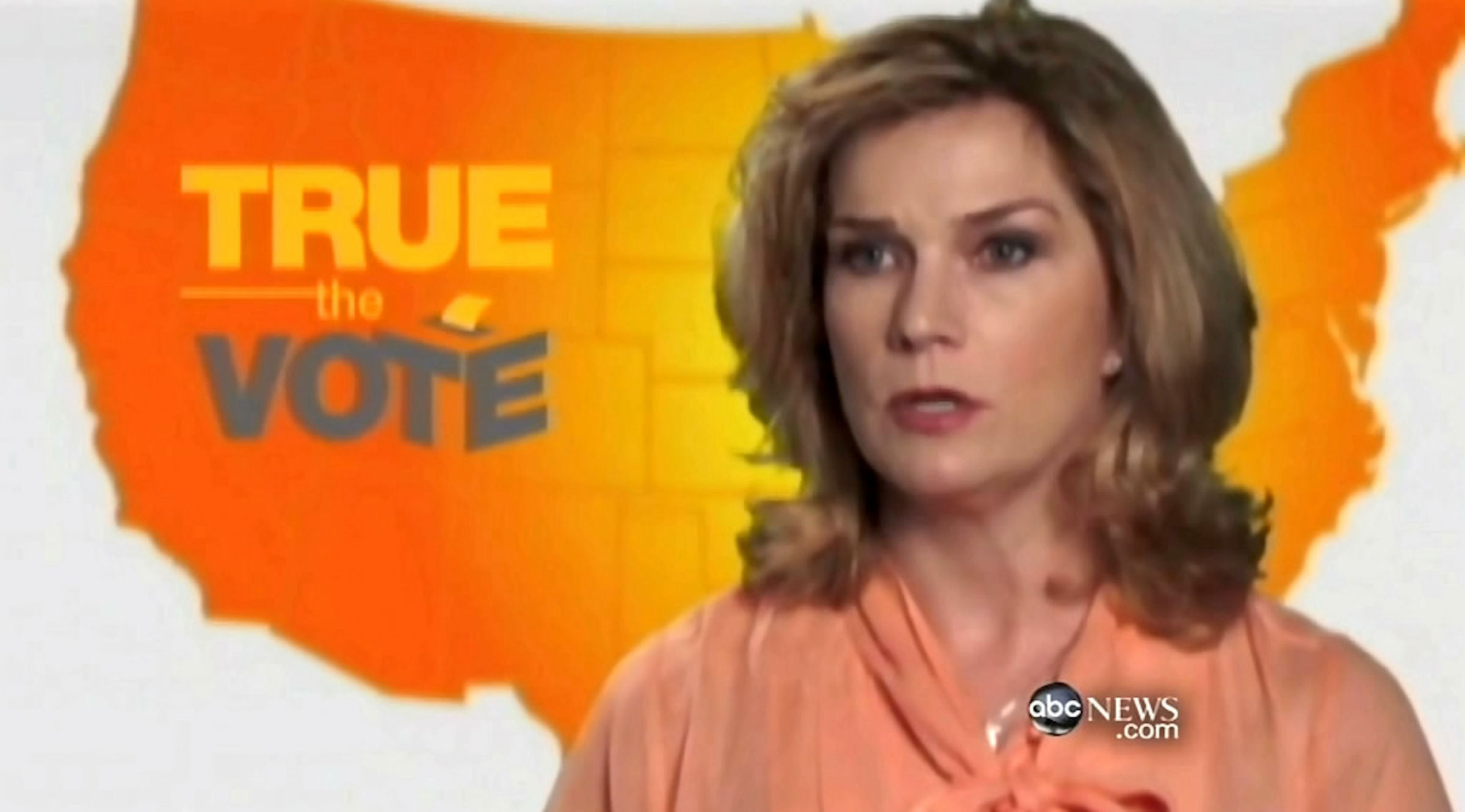 HARRIS: We set out to learn about True the Vote. We found out that its founder and leader is this woman, Catherine Engelbrect, who travels the country speaking about how voter fraud is a hidden menace, threatening the fabric of our democracy. In light of all the controversy, she agreed to sit down with us for her first national television interview. Is your goal really to end voter fraud or is your goal really to intimidate voters who disagree with you politically and scare them away from the polls?