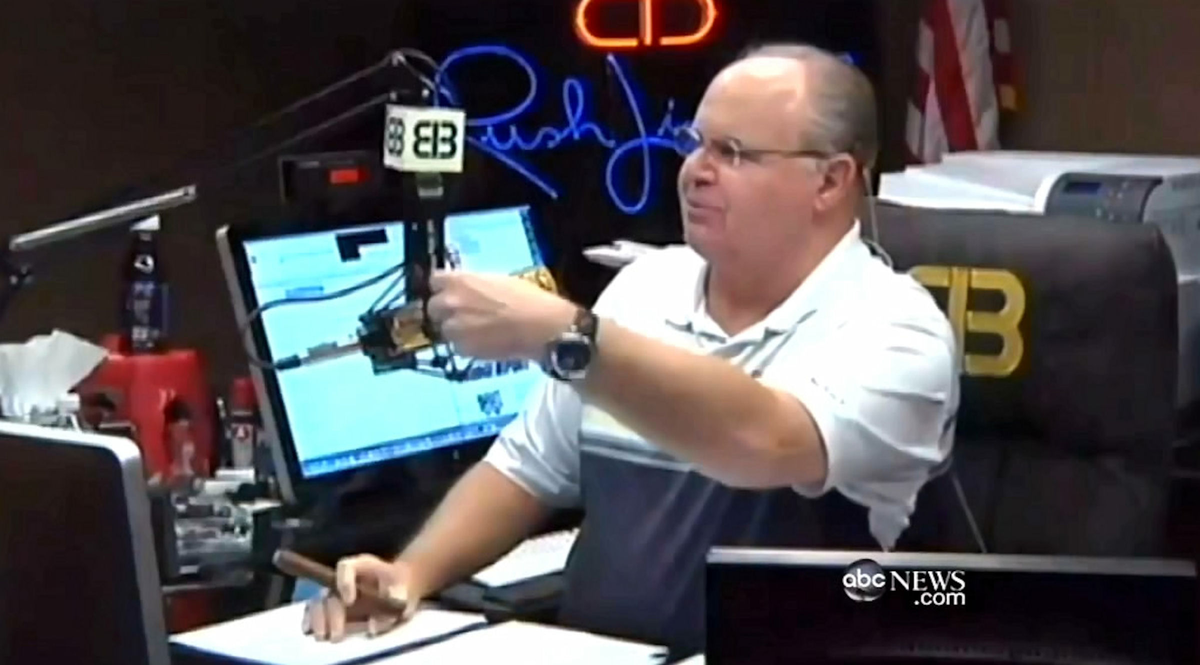 Of the conservative radio host, Moran mocked, "A shell-shocked Rush Limbaugh offered one option: Contempt for Obama supporters." The ABC journalist then played a clip of Limbaugh saying of election day: "It's hard to beat Santa Claus."