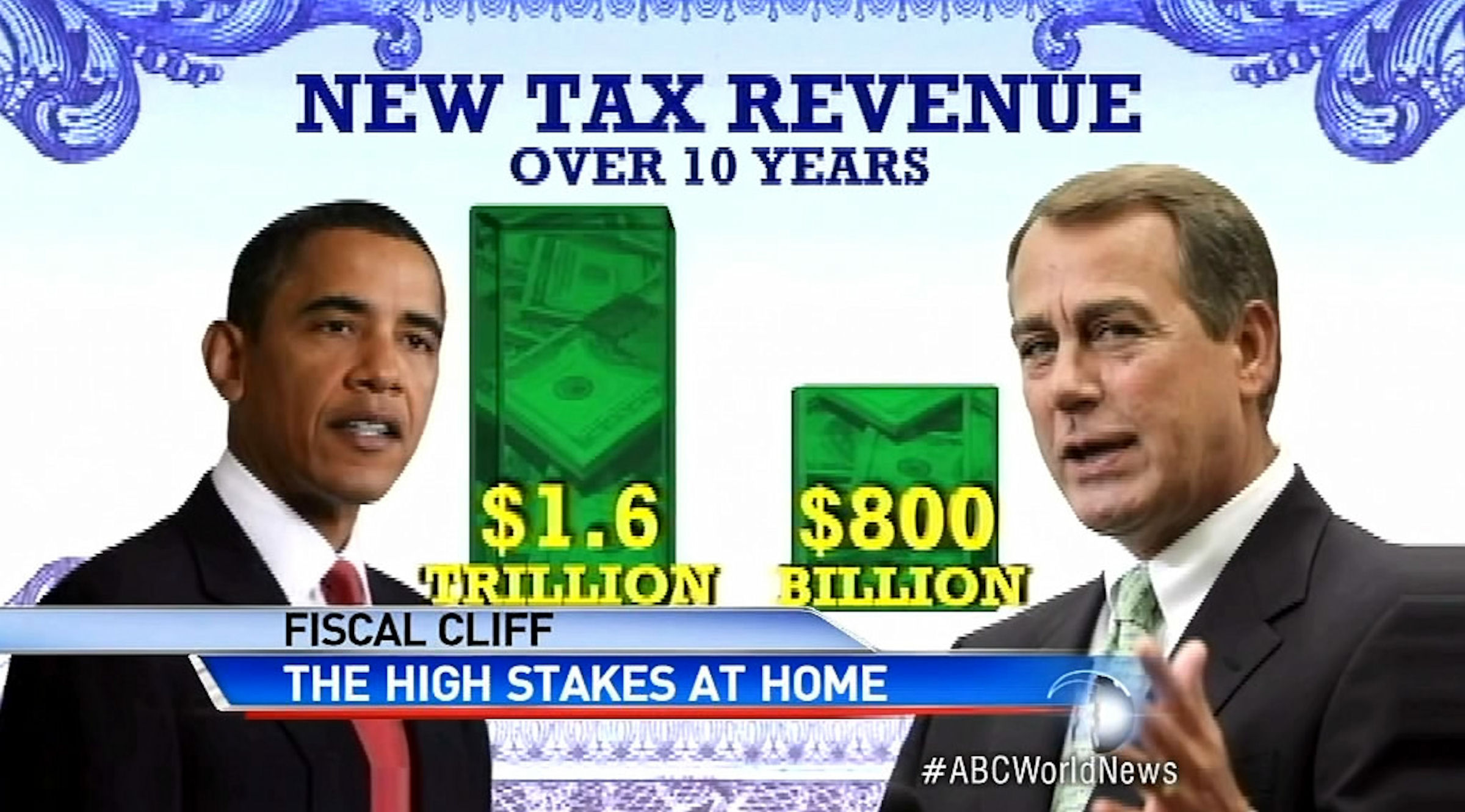 DAVID MUIR: Back in this country tonight and in Washington this evening where the fierce battle to avoid that fiscal cliff took a new turn today. Treasury Secretary Tim Geithner making a bold prediction that there's a good chance, he says, that Republicans will go along with a tax hike for the healthy. But it certainly didn't sound that way on the other side. And so, what is at stake for the average American family with 30 days to go until the deadline? ABC's David Kerley at the White House tonight.