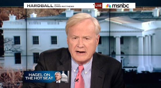 [UPDATED: Video added] MSNBC's Chris Matthews on Thursday assailed John McCain, slamming the "boiling hatred" aimed at Chuck Hagel, Barack Obama's Defense Secretary nominee. Matthews sneered, "Hatred, pure and simple, seeped from the mouths of John McCain and Lindsay Graham as they slashed away at war hero Hagel." (McCain is also a war hero. Graham is a veteran. Are those with military experience only allowed to speak out if they agree with Matthews?)