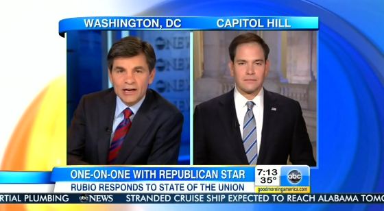 GEORGE STEPHANOPOULOS: And joining us now, the man who gave the Republican response to President Obama last night, Senator Marco Rubio of Florida. Good morning, senator. Thanks for joining us this morning.