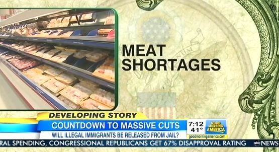 The reporters of Good Morning America, who on Monday briefly questioned Barack Obama's hyperbolic talk about the sequester cuts, have returned to promoting dire warnings of meat shortages and children losing vaccines. Guest co-host Elizabeth Vargas on Wednesday hyped "the grim countdown to the massive spending cuts that will kick in on Friday."