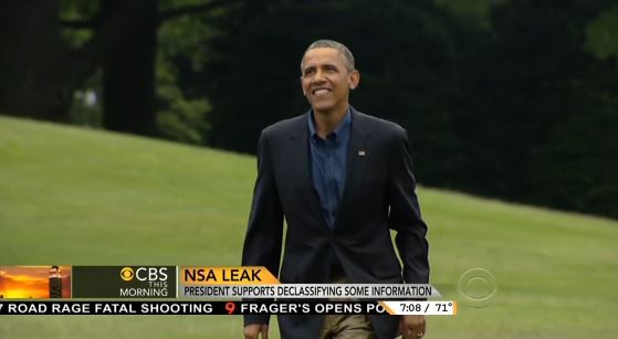 It was CBS This Morning that saw possible damage to Obama. Major Garrett warned, "The White House knows that this is an intelligence crisis that could become a political crisis." The reporter added that the administration "had to admit a politically and tactically startling truth: It conducts more surveillance than the Bush White House." [See video below. MP3 audio here.]