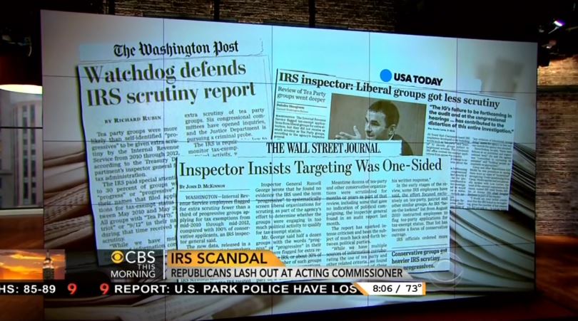 ABC and NBC on Thursday night and Friday morning ignored an announcement by the Internal Revenue Service inspector general that liberal organizations were not forced to endure the same invasive investigations as conservative, Tea Party groups. Only CBS This Morning covered the development. This contradicted earlier claims.