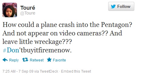 Go here for pictures of all of Toure's truther tweets.