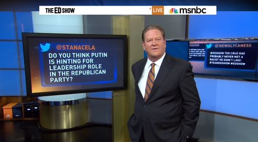 Loud liberal Ed Schultz on Thursday sneered that Republicans, because of a hatred for Barack Obama, now idolize their "new hero" Vladimir Putin. The Ed Show anchor also repeatedly, but incorrectly, identified Putin as the former head of the KGB.