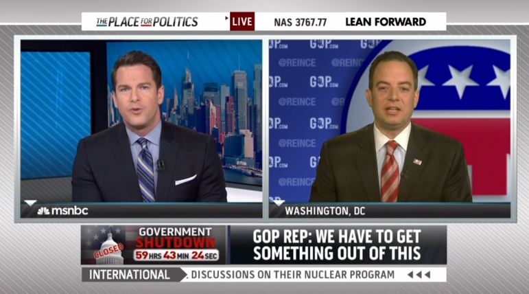 Republican National Committee Chairman Reince Priebus on Thursday fired back at the liberal, Obama-friendly talking points from MSNBC host Thomas Roberts. At one point, a disgusted Priebus, appearing to discuss the shutdown, slammed MSNBC, attacking, "This is a joke. I think you ought to just apply for a job in the Obama administration or the communications department of the DNC." [See video below. MP3 audio here.]