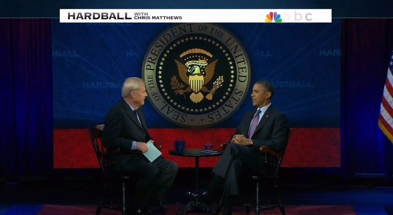 Chris Matthews received his long-desired wish on Thursday, an exclusive interview with Barack Obama. The Hardball anchor didn't exactly live up to the title of his show, wondering about Republican efforts to "make it difficult for minorities to vote" and questioning who was better, Hillary Clinton or Joe Biden?