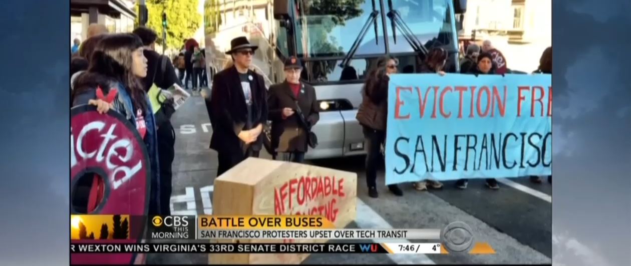 CBS This Morning journalists on Wednesday pushed a new San Francisco tax on buses as a symbol of "income inequality" and failed to identify a liberal organization supporting the move. The progressive city approved a $1 per stop tax on tech company buses that transport employees to the Silicon Valley. CBS journalist John Blackstone lectured, "The private buses have become symbols of income inequality and the belief that well paid tech workers are to blame for steeply rising rents." [See video below. MP3 audio here.]
