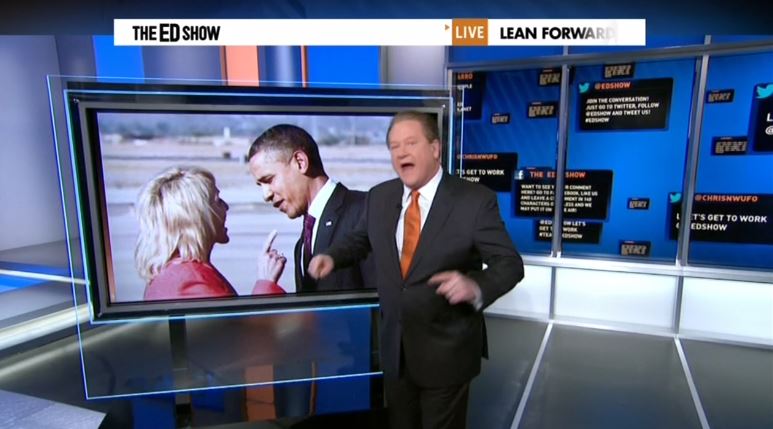 Schultz railed, "The bottom line is, Senate Bill 1062 is a license to discriminate." [See video below. MP3 audio here.] Given the anchor's sycophantic love for Barack Obama, it's unsurprising that he somehow related Jan Brewer's famous finger pointing at the President. Angry that the governor hasn't made a decision on the law, he fumed, "It's up to the woman who pointed the finger right in the face, arrogantly. Now we're finding out how arrogant she really is."