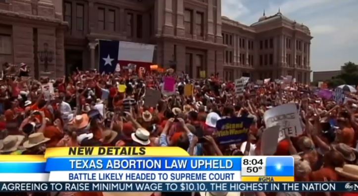 It requires abortion clinics to upgrade their facilities to surgical centers and it mandates that doctors carrying out these procedures have admitting privileges at a nearby hospitals in case something goes wrong. Now, a few months ago, a lower court ruled that this controversial law jeopardized women's health because some 20 abortion clinics in this state have already been forced to close. As you can see, this has sparked a lot of protest. But yesterday, the Fifth Circuit Court of Appeals in New Orleans overturned that ruling, disagreeing with the lower court's ruling, saying the law can be implemented to the fullest extent. You might say this is a win for the pro-life side.