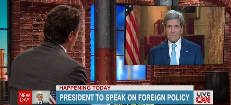 John Kerry appeared on all three network news programs, Wednesday, but it was an interview on CNN that provided a surprise. New Day anchor Chris Cuomo actually grilled the Secretary of State on pulling troops out of Afghanistan and whether Barack Obama is showing "weakness" internationally in dealing with countries such as Russia.