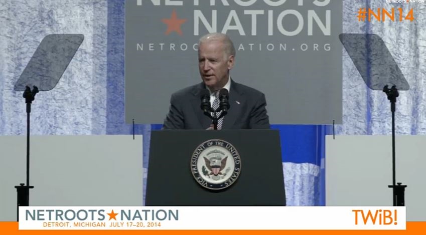 Joe Biden's appeal on Thursday to the left at the liberal Netroots Nation conference went unmentioned by the networks. The fact that the Vice President got heckled by the far-left was also ignored. While talking to the assembled progressives, Biden was interrupted by chants of "Stop deporting our families! Stop deporting our families!" [See video below.]