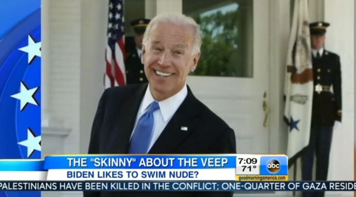AMY ROBACH: Finally we are getting the real skinny about Joe Biden. The Vice President of the United States apparently likes to go skinny dipping. I know you wanted to know that this morning. This is all according to a new book which quotes Secret Service agents saying the VP can often be found in his pool, in his birthday suit. Some agents admitting they'd rather cover their eyes or cover someone else, just hoping that he'll cover himself up. But, apparently, that's just the way he rolls. That's how Biden rolls.