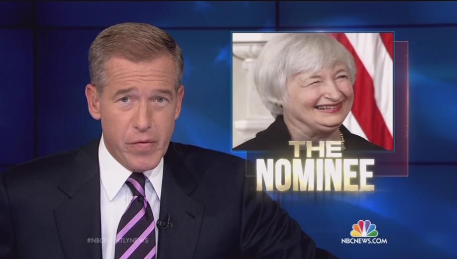 Broadcast network evening and morning shows were giddy at the nomination of Yellen. Her economic experience, intelligence and “working class roots” were all praised the night of her nomination and the following morning.