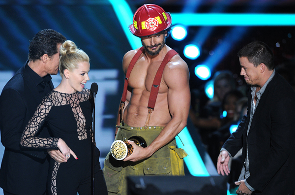 As the program continued, the crude nature of the content exponentially increased leading up to the presentation of “Best on Screen Transformation.” It was during that segment that the afore-mentioned shirtless axe-wielder appeared. (See video below.)