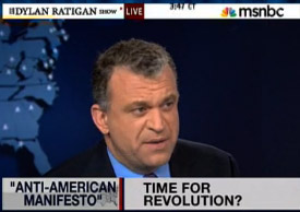 So he sounds like Bill Moyers, but wants to be recognized as nonpartisan and objective. Welcome to the land of Major Media Poseurs, Mr. Ratigan! But too many remember gems like Ratigan tagging the Tea Party as pyromaniacs who want to "burn the whole town down" and then turned around and promoting Ted Rall on the need for a radical-left revolution, "perhaps even through violence." (Ratigan had a rough time with the 2010 electoral results.)