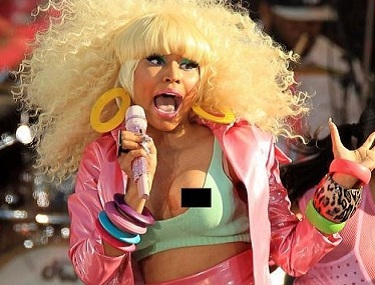 The ABC host was more contrite about Nicki Minaj, who had too much of a breast pop out on the August 5 edition of the morning show. Stephanopoulos said GMA has a delay button, but the producers "missed" their opportunity to keep ABC decent. It sort of a made a mockery out of the song Minaj sang. It's called "Where Them Girls At." (One of them girls was breaking out.)