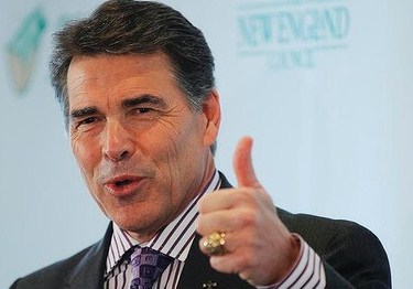 A man shouted, “Please secede,” referring to comments Perry has made about Texas leaving the United States because of what he considered encroachment by the federal government. Perry ignored them with a tight smile.
