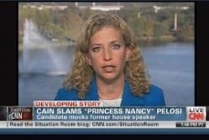 Colby Hall at Mediaite highlighted how Democratic Party Chairman Debbie Wasserman Schultz went on The Situation Room on CNN on Friday and trashed Herman Cain for using the word "princess" for Nancy Pelosi: “I thought it was a pretty callous, sexist throwaway line.” Then Wolf Blitzer allowed her to unload a wagon of talking points against the entire GOP field for 66 seconds. When he then asked if she believed Cain or his accusers, she insisted “I think Herman Cain needs to come clean and address them and say far more than he’s said already.”