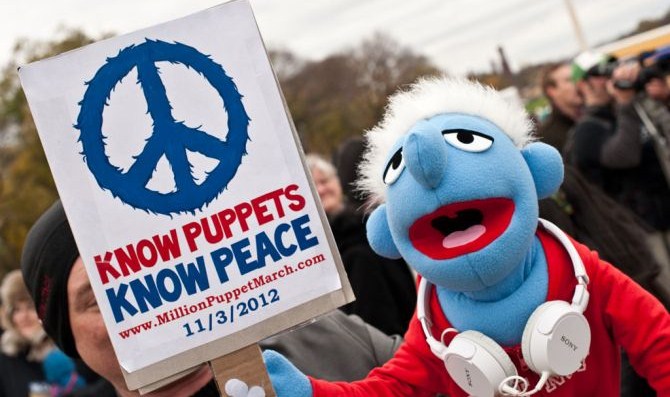 The Washington Post story offered the liberal organizers of an anti-Romney, pro-PBS-subsidy "Million Puppet March" their biggest dose of publicity on Monday on the front page of the Style section -- despite the tiny 600-person Capitol Hill protest on Saturday. Post reporter Maura Judkis wrongly presented the march co-founder Chris Mecham as a nonpartisan puppet lover.