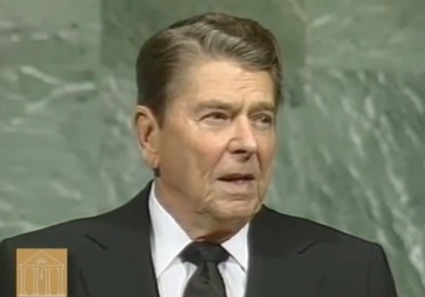 History shows Reagan was not eager to send troops into combat in the Middle East, despite the media's tendency to categorize him as a bellicose warmonger. Here is some of what President Reagan declared at the United Nations on September 26, 1988: