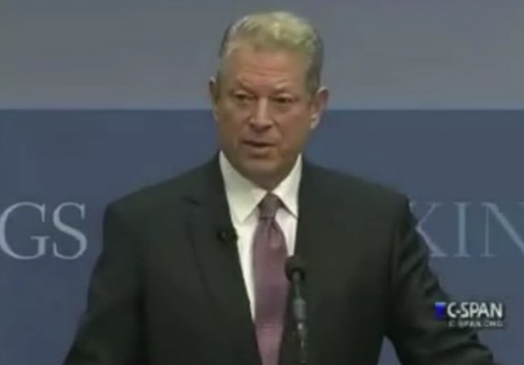 Melanie Hunter at CNS News reports Al Gore launched some hot rhetoric at the normally sedate Brookings Institution on Friday on the threat of a shutdown over Obamacare. " I think the only phrase that describes it is political terrorism." He spoke in an alleged Tea Party voice: "‘Nice global economy you got there. Be a shame if we’d have to destroy it. We have a list of demands. If you don’t meet ‘em all by our deadline, we’ll blow up the global economy." Then he said: "Really?: