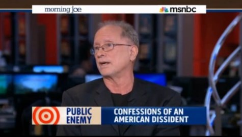 Ayers is selling a new memoir called "Public Enemy: Confessions of an American Dissident," but Mika threw softballs and let him discuss how he has to put his grandkids to bed at 7:30 pm. She left the heavy lifting to Mark Halperin, who quickly found that much like unrepentant Rev. Al Sharpton's morning visit last week, Bill Ayers has no regrets about bombing the Pentagon or the U.S. Capitol. (Video, transcript below)