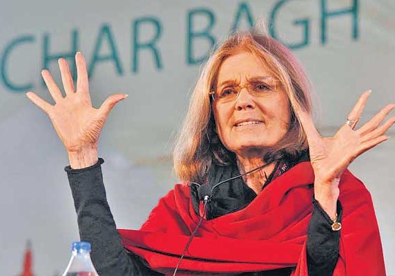 When her session ended, dozens of women in the audience approached the stage seeking Steinem’s autograph and taking her photograph. The approaches continued all day as she attended talks by other writers at what is called the world’s largest free literature fest. About 250,000 people were expected to attend the five-day event in a region where sales of dead-tree books are rising, not falling, said the festival’s co-chair, British historian and author William Dalrymple.