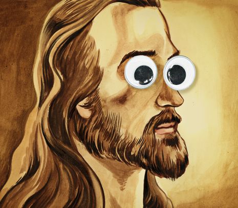 At that very moment, I heard a voice telling me, “Eleanor, go ye forth and tell of the Lord’s wonders, using pipe cleaners, Popsicle sticks, and enormous Day-Glo crêpe-paper sunflowers with plastic googly eyes and refrigerator-magnet grins.” By the very next day, I had crafted a miniature replica of the Last Supper, entirely out of those tiny Jet-Puffed marshmallows, empty bottles of mini-bar vodka, and human hair.