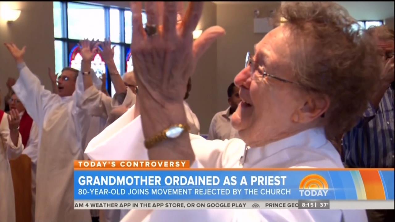 LESTER HOLT: Now to a newly ordained priest who was probably listening closely to what Pope Francis had to say during Mass this morning. 80-year-old Rita Lucey took part in a special ceremony on Saturday. Her priesthood won't be recognized by the Catholic Church, but as NBC’s Cynthia McFadden tells us, that’s not stopping her from answering her calling.