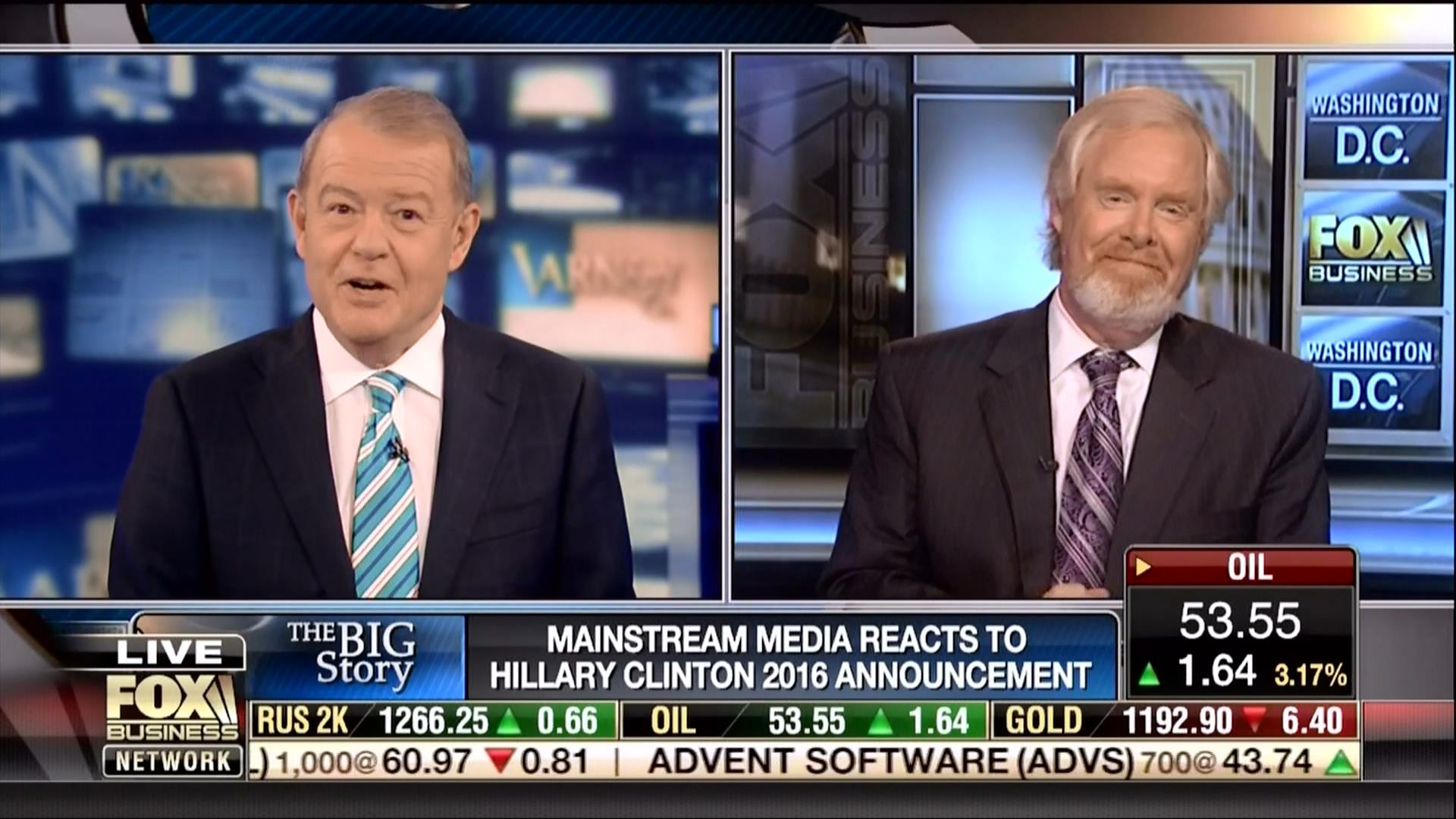 MRC president Brent Bozell appeared live from Washington today on the Fox Business program Varney & Co. The topic was the media’s difference in covering Hillary Clinton versus the Republican presidential candidates. Bozell said the campaign coverage is all “the Hillary Clinton spin machine.” With her wealth, she’s the “uber one percent,” not an “everyday American.”