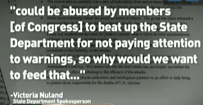 Epstein assumption that only conservatives and Republicans have a problem with Nuland's behavior in Benghazi is somewhere between misleading and deceptive. A recent Rasmussen poll showed that "45% Rate Obama Administration’s Benghazi Response As Poor." You can't get to 45% without having a fair number of Democrats and moderates. Victoria Nuland's outrageious misbehavior is an important element of that mix. Jennifer Epstein can try to pretend it away all she wants, but it doesn't change the reality.
