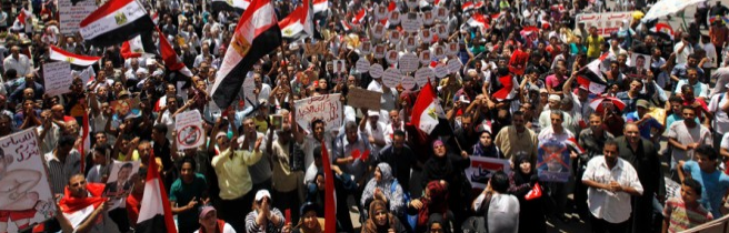 ... The anti-Morsi demonstrators in Tahrir Square also waved Egyptian flags. They cheered, clapped, whistled and chanted, "Egypt, Egypt, Egypt. Long live Egypt!" and "The people want the fall of the regime," a phrase heard repeatedly in 2011.
