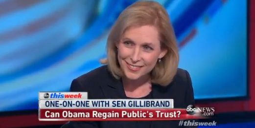 Gillibrand appeared after a predictable back-and-forth involving Obamabot David Plouffe, former Bush adviser Matthew Dowd, and ABC Chief Business Correspondent Rebecca Jarvis.
