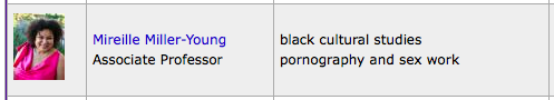 Her "areas of study" include "Pornography; Sex Work; Black Film, Popular Culture and Art; Feminist & Queer Theory; African American & African Diaspora Studies; Visual Archives; New Media; Ethnography; Oral History. As I wrote on Monday, UCSB "clearly either charges far too much in tuition, gets far too much money from the state, or both."