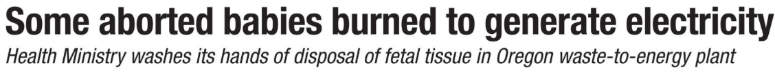 A month ago, the UK Telegraph reported that "The remains of more than 15,000 babies were incinerated as 'clinical waste' by hospitals in Britain with some used in 'waste to energy' plants."