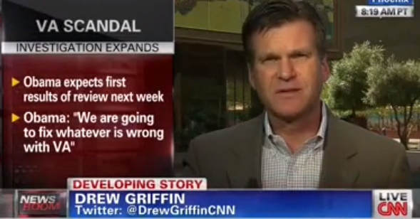 In discussing President Obama's Wednesday press conference on the Veterans Administration wait-list scandal, CNN's Drew Griffin, identified by the network's Jake Tapper as "the reporter who began this whole story with his investigation into the Phoenix VA," appeared to barely contain himself as he described the "disconnect between what's happening out here in the country and what the president is talking about."