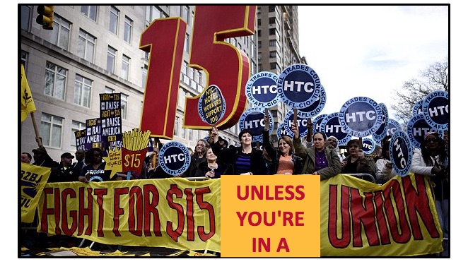 In the process, organized labor may have tipped its hand as to what's really behind their national $15-per-hour minimum wage campaign — but only for everyone else (bolds are mine throughout this post):