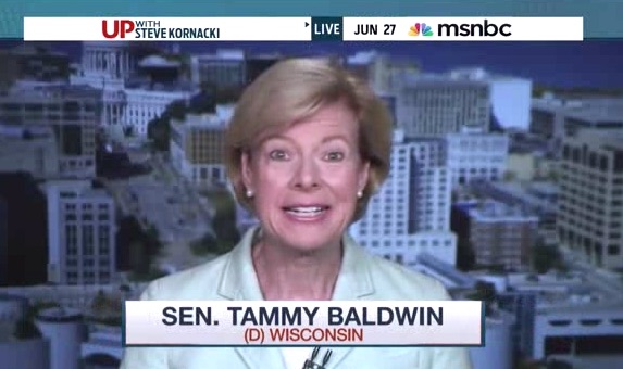 Tammy Baldwin: “Certainly the first amendment says that in institutions of faith that there is absolute power to, you know, to observe deeply held religious beliefs. But I don’t think it extends far beyond that. We’ve seen the set of arguments play out in issues such as access to contraception. Should it be the individual pharmacist whose religious beliefs guides whether a prescription is filled, or in this context, they’re talking about expanding this far beyond our churches and synagogues to businesses and individuals across this country. I think there are clear limits that have been set in other contexts and we ought to abide by those in this new context across America.”