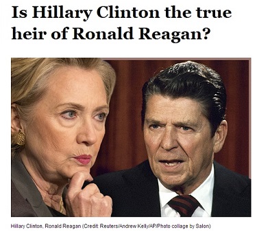 Conservatives seeking a potential president who’s like Ronald Reagan might be interested to know that Andrew O’Hehir of Salon thinks he’s found such a person. True, they might then be surprised to learn that he's talking about Hillary Clinton.