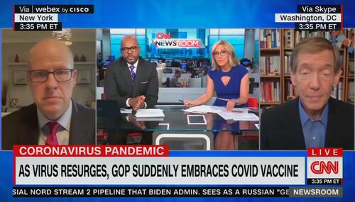 On Thursday's CNN Newsroom, Carl Cameron and host Alisyn Camerota, both a couple of former Fox News personalities, questioned the motives of their former employer's vaccine advocacy. Cameron was so disgusted with Fox and conservative media's vaccine coverage that he declared, "The problem with all of this is we have free speech and it doesn't entirely include lying."