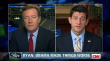 When CNN's Piers Morgan argued that President Obama needed time to fix the economy, Paul Ryan answered him on Wednesday that Obama slowed what should have been a quick recovery.
